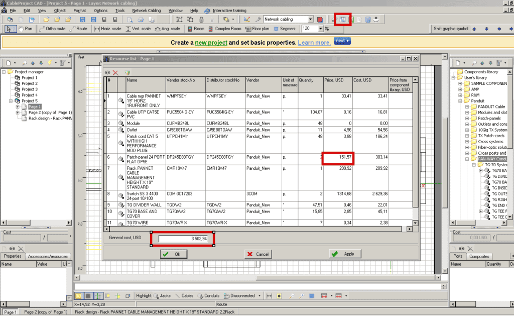 8. Modify components and equipment prices and create project reviews (versions) for cost comparison