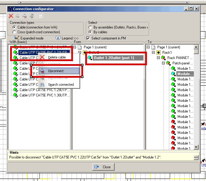 15. Check the parts that are not connected to others like outlets without cables or cables